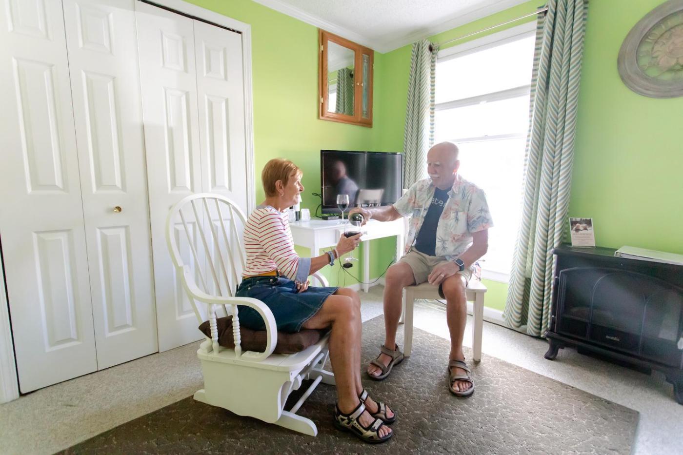 Themed rooms at Clay Corner Blacksburg feature bright decor with cable TV and an en suite bathroom.