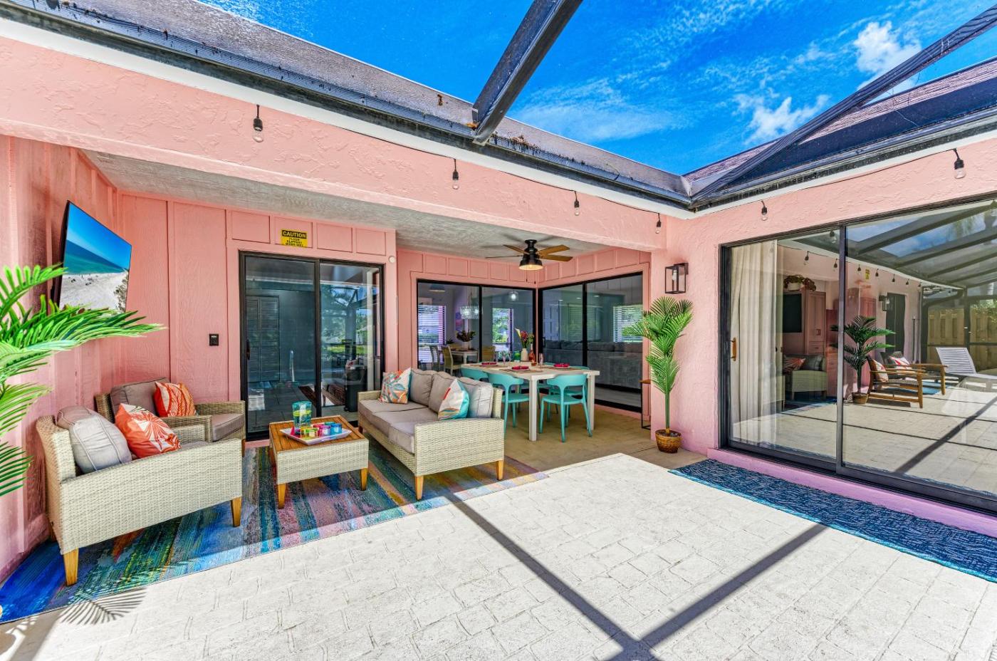Na terenie obiektu Tropical pool home w outdoor TV & living space! znajduje się taras słoneczny.