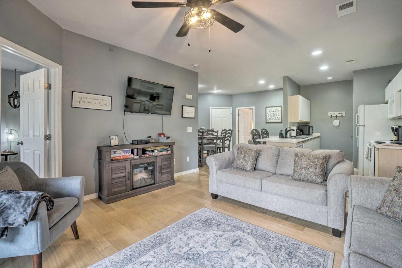 Obiekt Jacuzzi Tub Branson Retreat about 4 Mi to Strip położony jest w miejscowości Branson i oferuje klimatyzację, balkon oraz bezpłatne Wi-Fi. Odległość ważnych miejsc od obiektu: Centrum handlowe Branson Landing – 7,5 km, Andy Williams Moon River Theater – 11 km. Na miejscu znajduje się patio i odkryty basen.