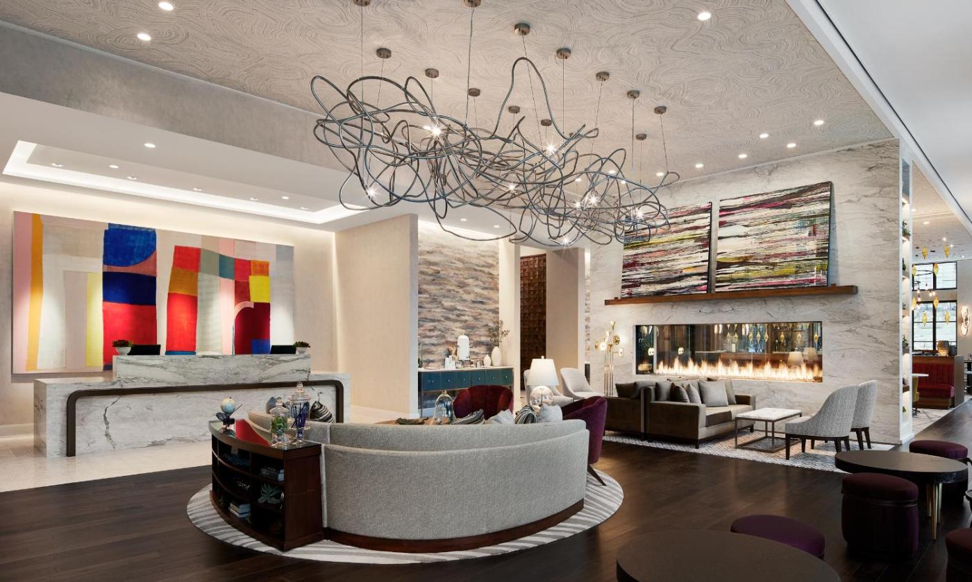 Adorned with rich wood and leather bound detailing, the on-site restaurant offers an array of culinary classics, as well as a library with a collection of contemporary literature. The hotel lobby features a double-sided fireplace and lounge-style seating. Community-inspired artwork can be admired around every corner as guests navigate through this creative, artistic boutique hotel.