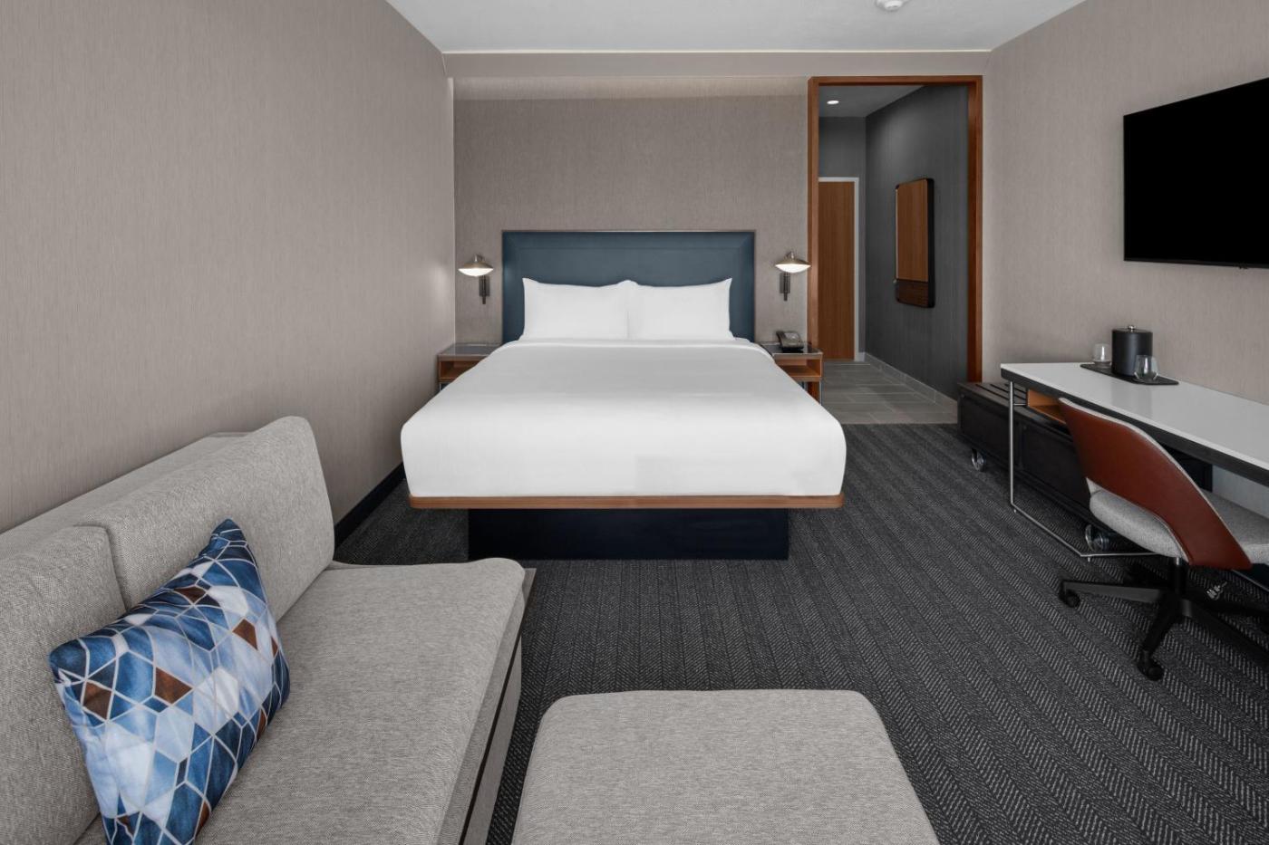 Standard King Room with Sofa Bed - Hearing Accessible. The double room has a private bathroom, air conditioning, a coffee machine, as well as a seating area with a flat-screen TV. The double room features heating. The unit has 2 beds. Pokój Dwuosobowy - 3 osobowy. Powierzchnia pokoju ok.: 25 mkw. ;
