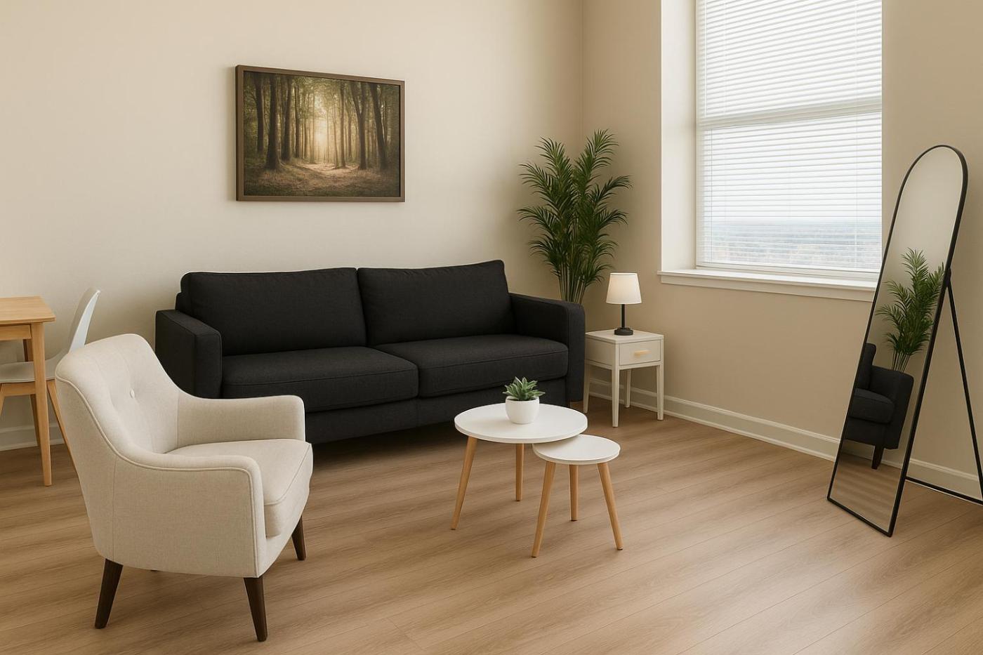 W apartamencie z 1 sypialnią zapewniono salon z telewizorem z płaskim ekranem, kuchnię z pełnym wyposażeniem oraz łazienkę (1).