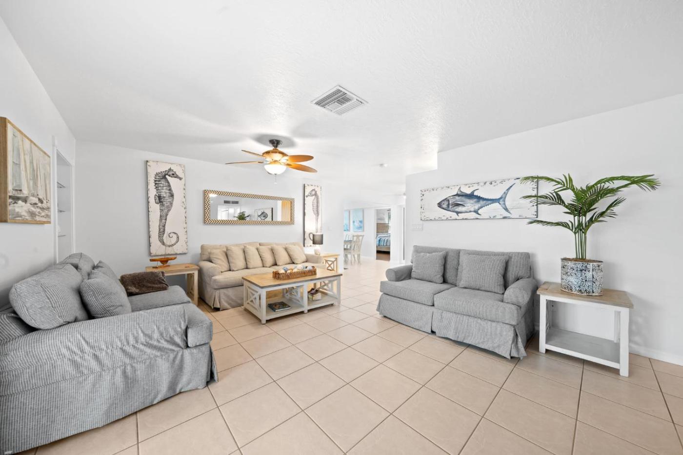 Obiekt Skippers Landing - 4 Bedroom with Heated Pool znajduje się w miejscowości Cocoa Beach i zapewnia patio, ogród oraz odkryty basen. Odległość ważnych miejsc od obiektu: Plaża Cocoa Beach – 300 m. Oferta domu wakacyjnego obejmuje też prywatny basen oraz bezpłatne Wi-Fi.