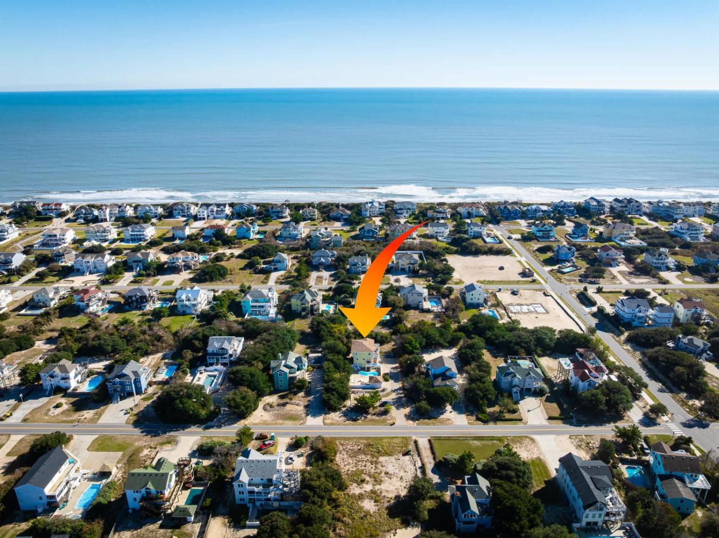 Corolla Getaway with Private Pool 5 mins to Beach features 4 bedrooms, a fully equipped kitchen with a dishwasher and an oven, a washing machine and 4 bathrooms with a hair dryer. A TV is provided.