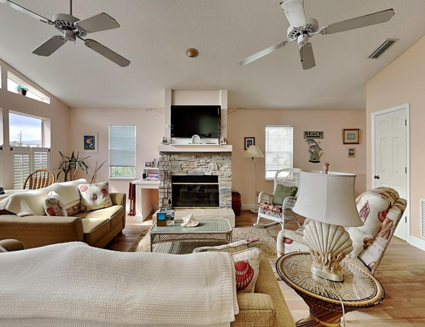 W domu wakacyjnym z 4 sypialniami zapewniono salon z telewizorem z dostępem do kanałów kablowych, kuchnię z pełnym wyposażeniem, w tym lodówką, a także kilka łazienek (3).