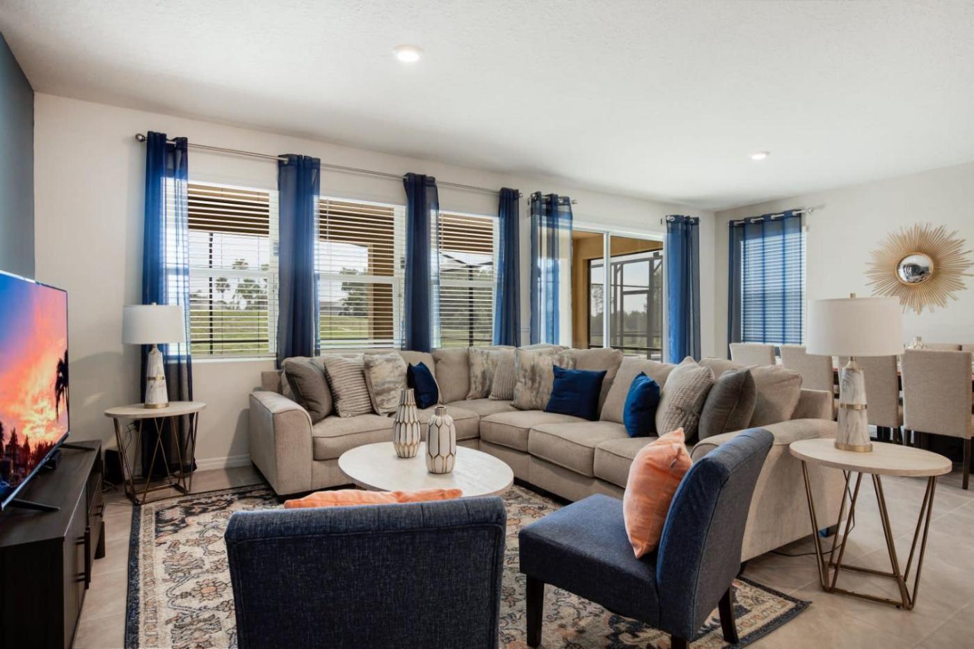 Obiekt Spacious 7BR Solterra Getaway with Pool & Spa, położony w miejscowości Davenport, oferuje bezpłatne Wi-Fi, klimatyzację, centrum fitness oraz taras. Odległość ważnych miejsc od obiektu: Disneys Animal Kingdom – 18 km, Promenada Disneys Boardwalk – 19 km. Oferta domu wakacyjnego obejmuje prywatny basen.