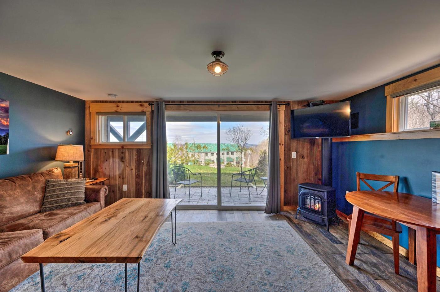 Situated in East Burke in the Vermont region, Slopeside Burke Mountain Condo with Fireplace! features a patio. Guests are welcome to go for a swim in the heated pool. Featuring free WiFi throughout the property, the non-smoking apartment has a hot tub.