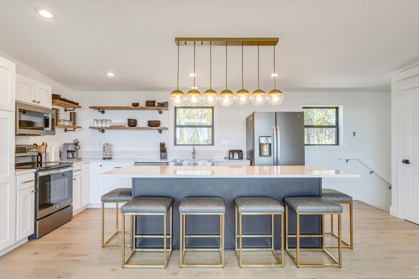 Oferta domu wakacyjnego obejmuje kilka sypialni (3), salon, kuchnię z pełnym wyposażeniem, w tym lodówką i ekspresem do kawy, a także kilka łazienek (3) z prysznicem oraz wanną z hydromasażem. W domu wakacyjnym zapewniono ręczniki i pościel.