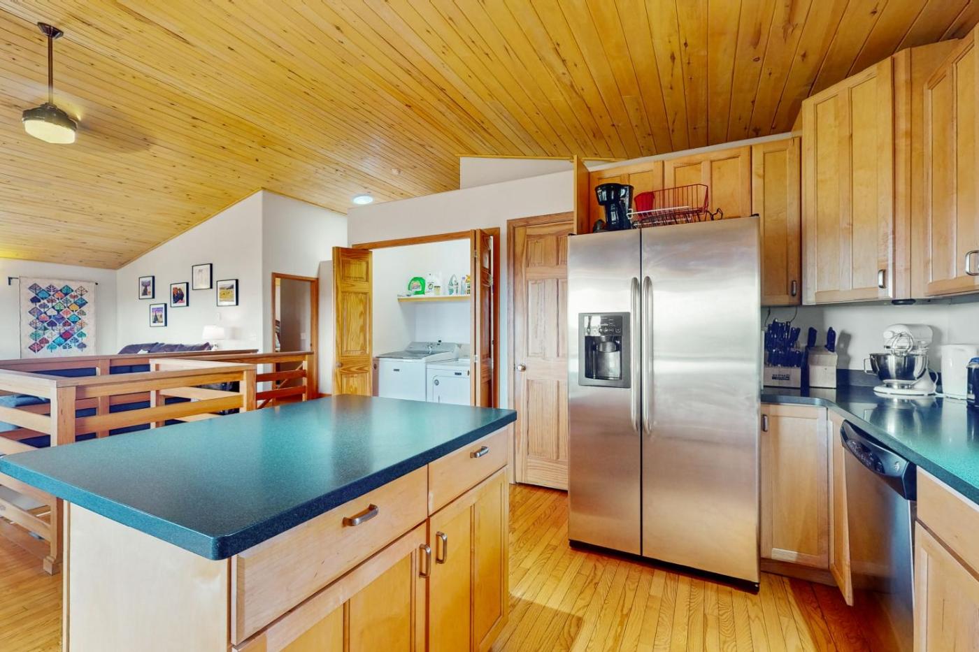 Three-Bedroom House. The hot tub is the standout feature of this holiday home. Boasting a private entrance, this spacious holiday home also includes 3 bedrooms, 2 bathrooms and a seating area. Guests will find a stovetop, a refrigerator, a dishwasher and kitchenware in the well-equipped kitchen. The holiday home also features a barbecue. The holiday home offers a washing machine, a tea and coffee maker, a dining area, a TV with streaming services, as well as mountain views. The unit has 5 beds and 1 futon.