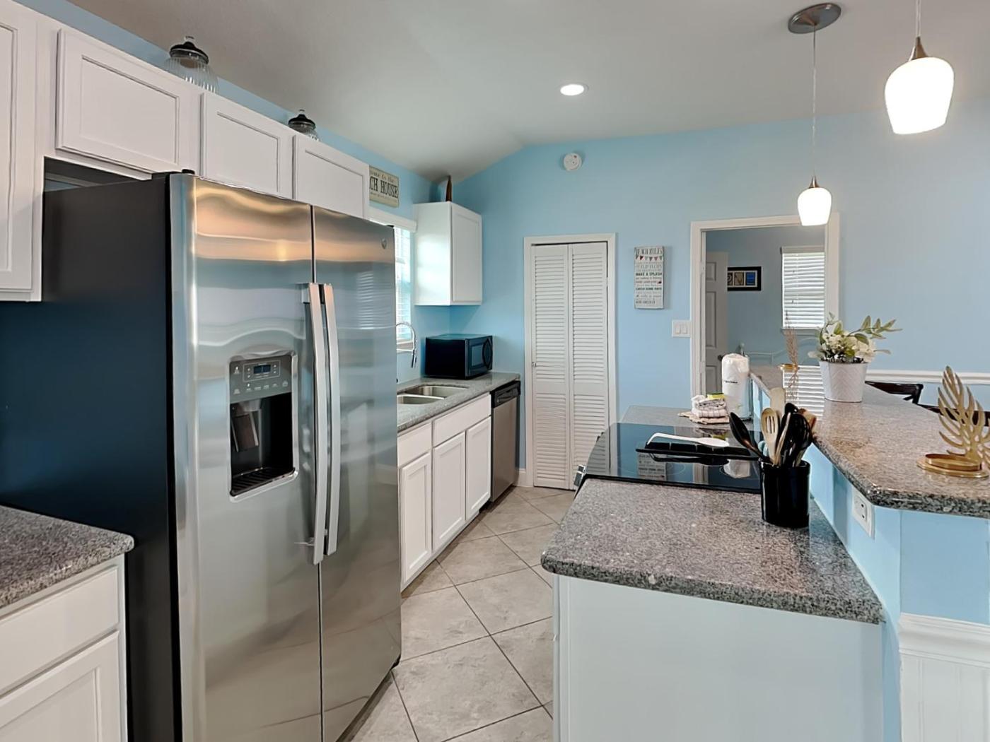 W domu wakacyjnym z 3 sypialniami zapewniono salon z telewizorem, kuchnię z pełnym wyposażeniem, w tym lodówką i zmywarką, a także kilka łazienek (2) z suszarką do włosów.