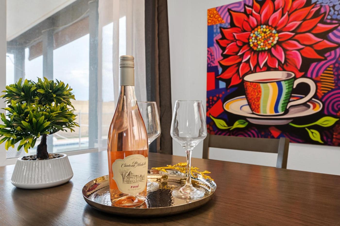 Four-Bedroom House. The private pool and fireplace are the special features of this holiday home. Boasting 4 bedrooms, this spacious holiday home has 2 bathrooms with a bath, a seating area and terraceyou can relax. Guests will find a stovetop, a refrigerator, a dishwasher and an oven in the well-equipped kitchen. The holiday home also includes a barbecue. The air-conditioned holiday home features a flat-screen TV, a washing machine, a minibar, a tea and coffee maker as well as pool views. The unit offers 6 beds.