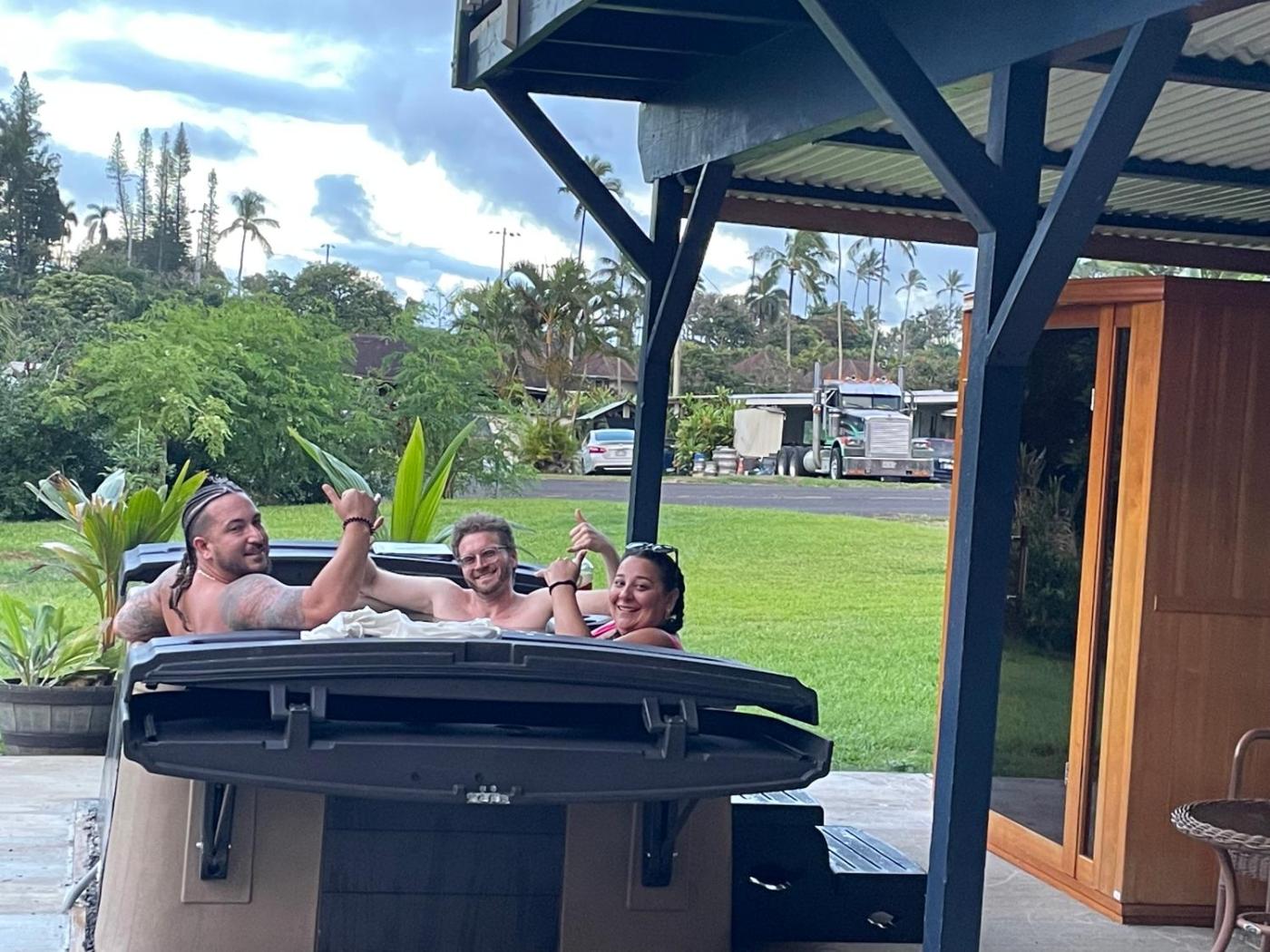 Zaplecze odnowy biologicznej obiektu Pau Hana Paradise obejmuje saunę i wannę z hydromasażem.
