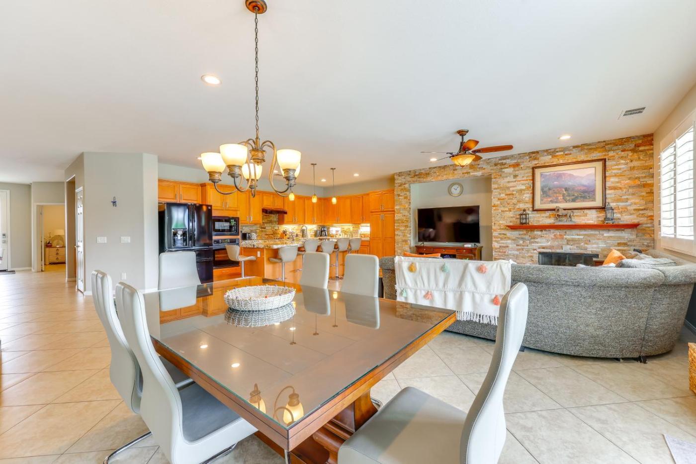 Obiekt Gazebo and Putting Green Serene Indio Getaway położony jest w miejscowości Indio i oferuje klimatyzację, patio oraz bezpłatne Wi-Fi. Odległość ważnych miejsc od obiektu: Centrum handlowe Saks Fifth Avenue Palm Desert – 20 km, Klub golfowy Escena – 35 km. Oferta domu wakacyjnego obejmuje prywatny basen.