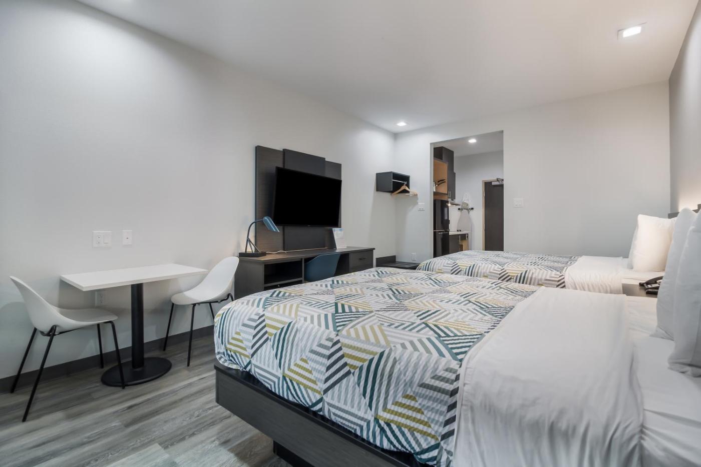 Queen Room with Two Queen Beds - Disability Access - Roll In Shower. In the well-equipped kitchenette, guests will find a stovetop, a refrigerator, a microwave and a toaster. This quadruple room has air conditioning, a tea and coffee maker and a TV with cable channels. The unit has 2 beds. Pokój Czteroosobowy - 7 osobowy. Powierzchnia pokoju ok.: 19 mkw. ;