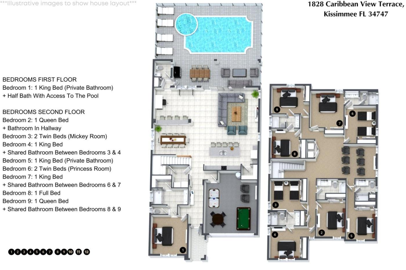Obiekt 9 Bedroom 65 Bathoom Solara Resort 1828 Cv położony jest w miejscowości Kissimmee i oferuje bezpłatne Wi-Fi oraz klimatyzację. Odległość ważnych miejsc od obiektu: Disneys Animal Kingdom – 15 km, Promenada Disneys Boardwalk – 17 km. Oferta domu wakacyjnego obejmuje prywatny basen.