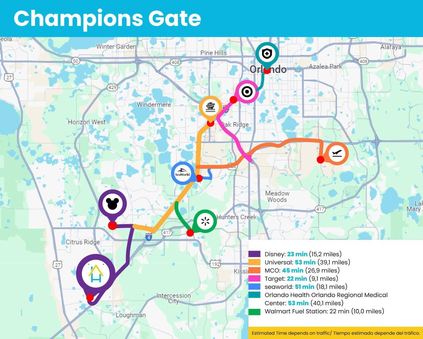 Odległość ważnych miejsc od obiektu: Park rozrywki Disneys Hollywood Studios – 22 km, Park wodny Disneys Blizzard Beach – 22 km. Lotnisko Lotnisko Orlando International znajduje się 48 km od obiektu.