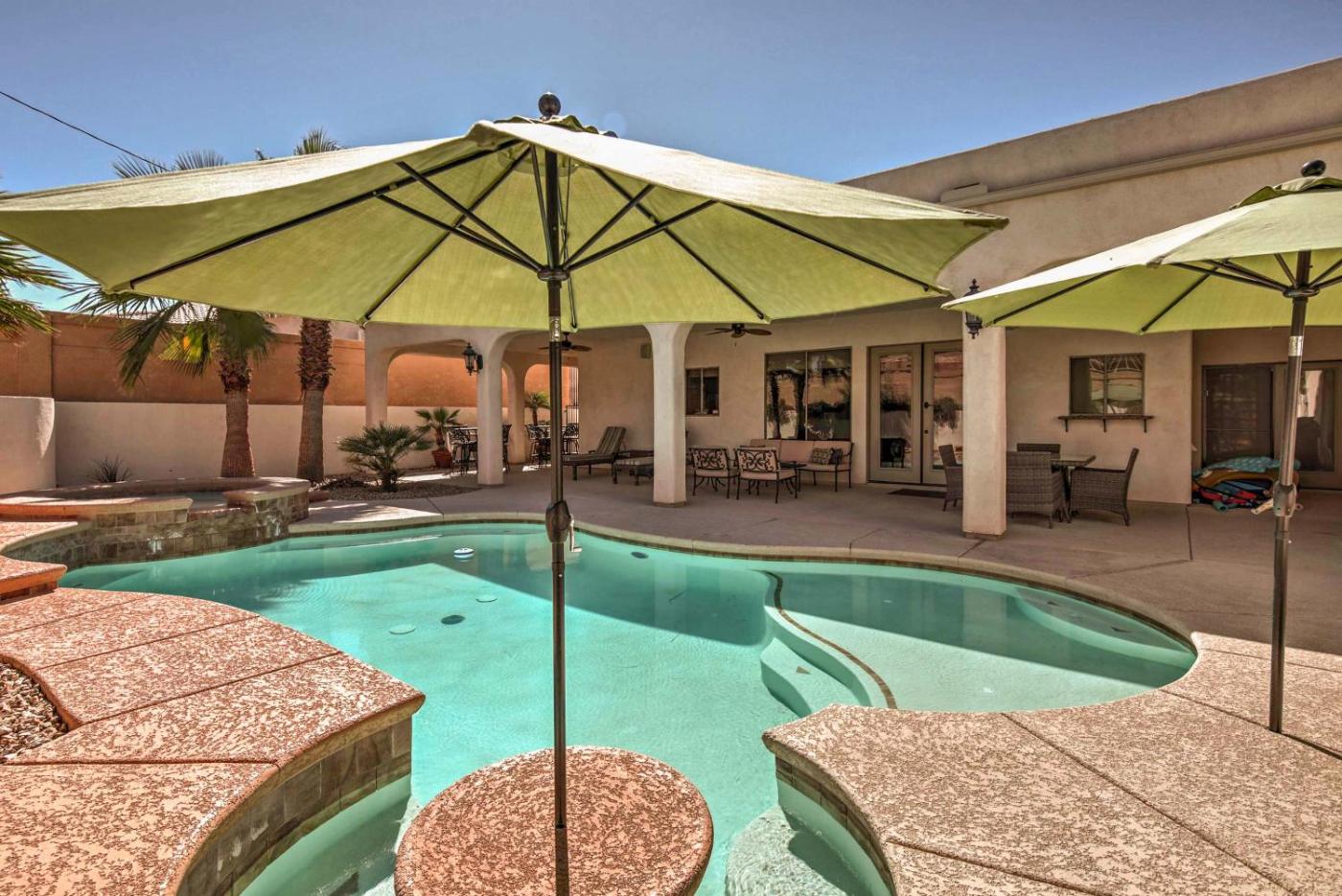 Obiekt Less Than 2 Mi to Lake Havasu Spacious Home with Patio! oferuje centrum odnowy biologicznej z wanną z hydromasażem i odkrytym basenem.