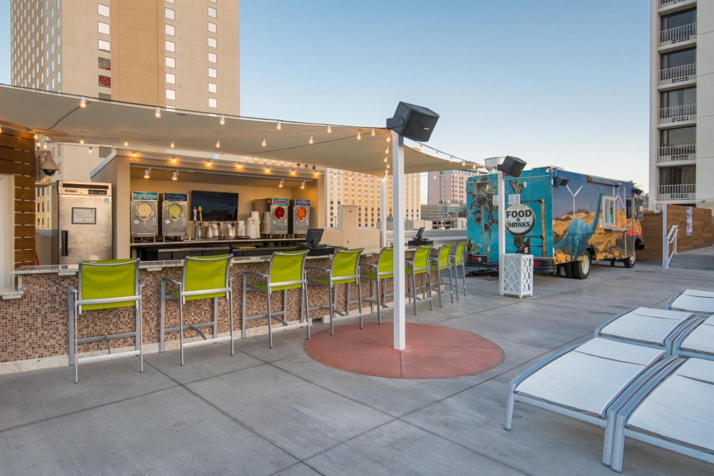 Na miejscu działają między innymi restauracje: Oscars Steakhouse, Hash House A Go Go oraz Pop Up Pizza. Dodatkowe udogodnienie stanowi strefa gastronomiczna, w której oferowane są różne dnia typu fast food.