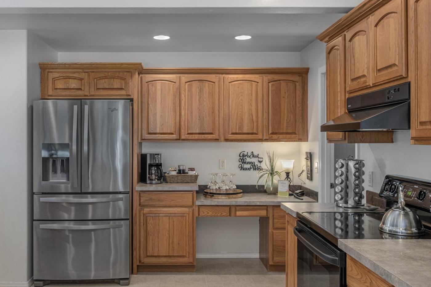 W domu wakacyjnym do dyspozycji gości przygotowano kilka sypialni (4), kuchnię ze standardowym wyposażeniem, takim jak lodówka i zmywarka, a także kilka łazienek (3) z wanną z hydromasażem. Wyposażenie obejmuje także pralkę oraz telewizor z dostępem do kanałów kablowych. W domu wakacyjnym zapewniono ręczniki i pościel.