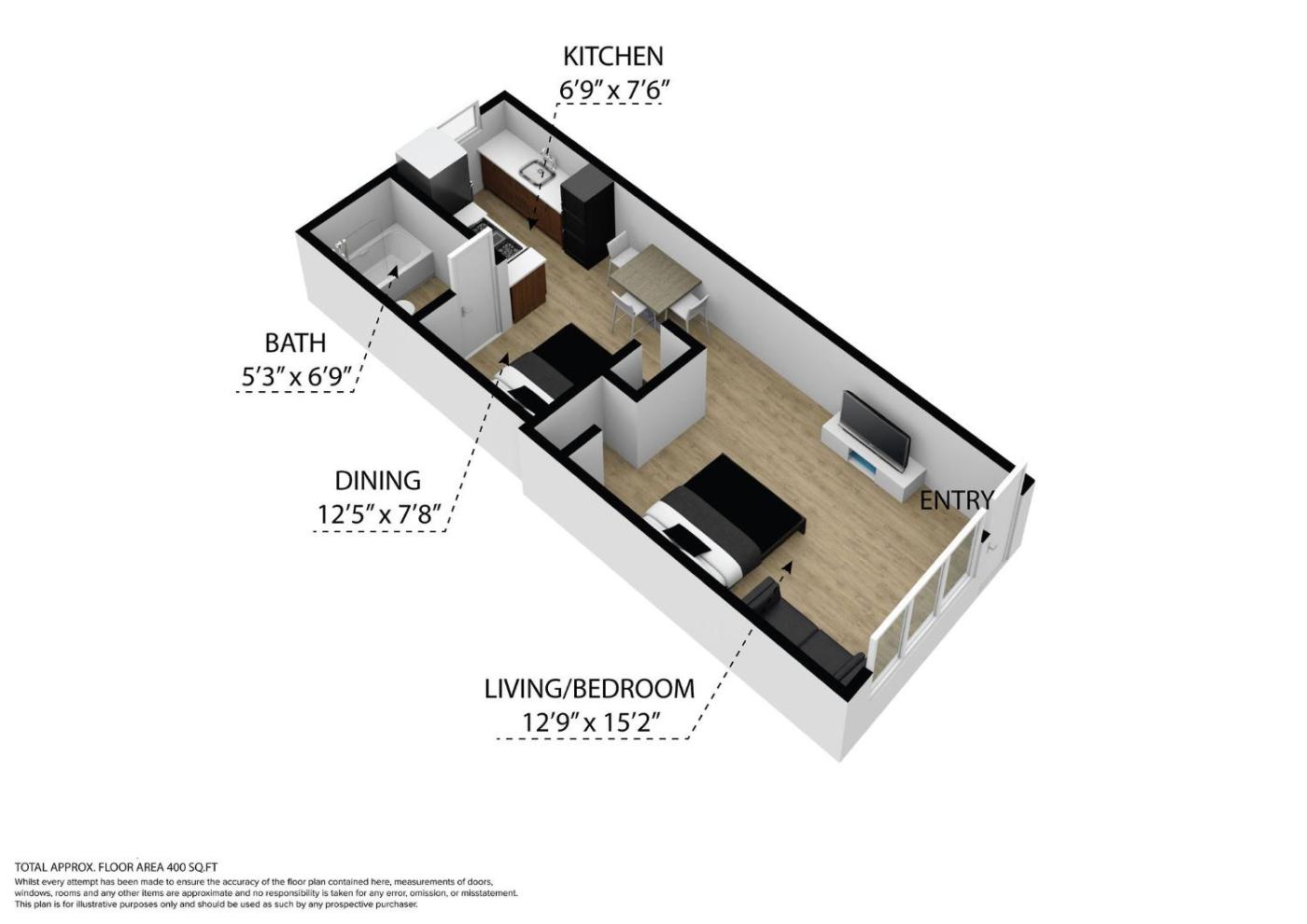 Oferta apartamentu obejmuje sypialnię (1), łazienkę (1) oraz salon.
