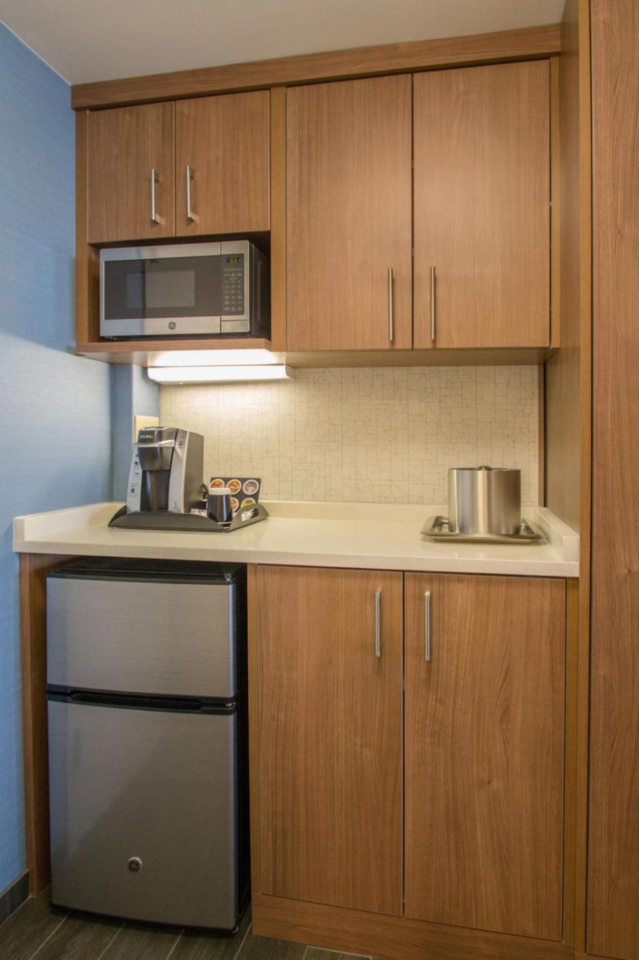 A 32-inch flat-screen TV, desk, and Keurig coffee machine are standard in every room. Holiday Inn Express Nags Head Oceanfront extras include a microwave, small refrigerator, and en suite. Some rooms have a sofa bed.