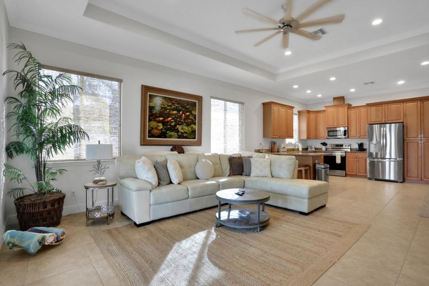 Oferta domu wakacyjnego obejmuje kilka sypialni (3), salon, kuchnię z pełnym wyposażeniem, w tym lodówką i ekspresem do kawy, a także kilka łazienek (2) z prysznicem oraz bezpłatnym zestawem kosmetyków. W domu wakacyjnym zapewniono ręczniki i pościel.