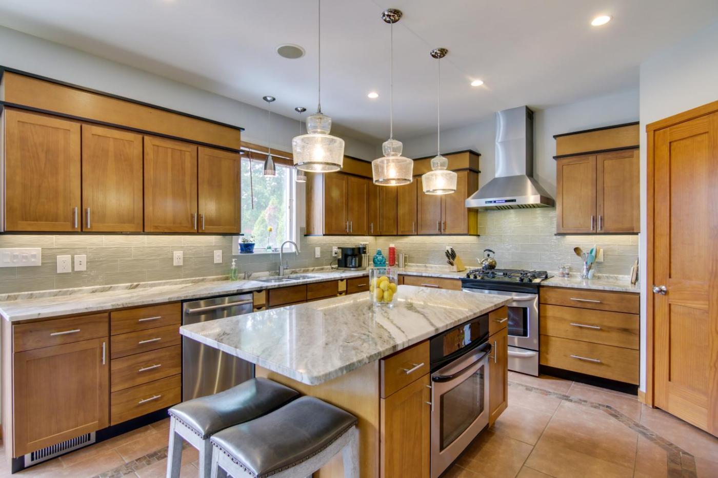 Oferta domu wakacyjnego obejmuje kilka sypialni (5), salon, kuchnię z pełnym wyposażeniem, w tym lodówką i ekspresem do kawy, a także kilka łazienek (4) z prysznicem oraz bezpłatnym zestawem kosmetyków. W domu wakacyjnym zapewniono ręczniki i pościel.