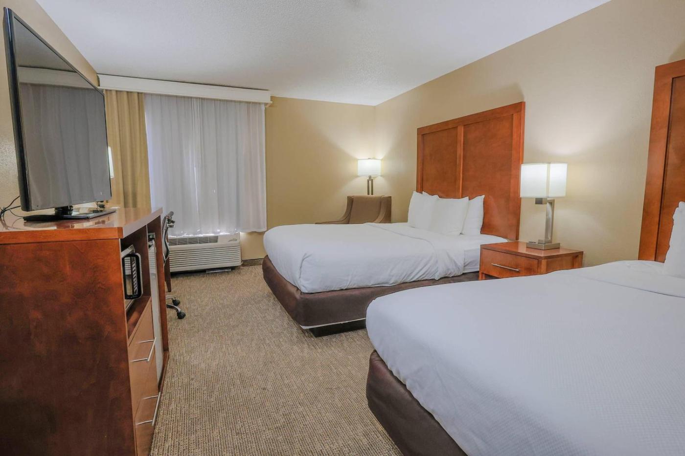 Queen Room with Two Queen Beds - Non-Smoking. Featuring free toiletries, this twindouble room includes a private bathroom with a bath, a shower and a hairdryer. The twindouble room features air conditioning, a coffee machine, a dining area, a wardrobe, as well as a flat-screen TV with streaming services. The unit has 2 beds. ;