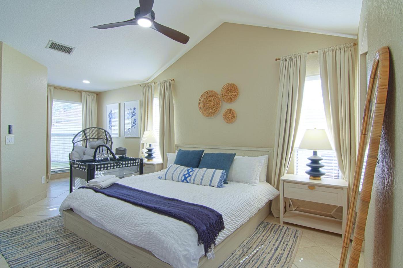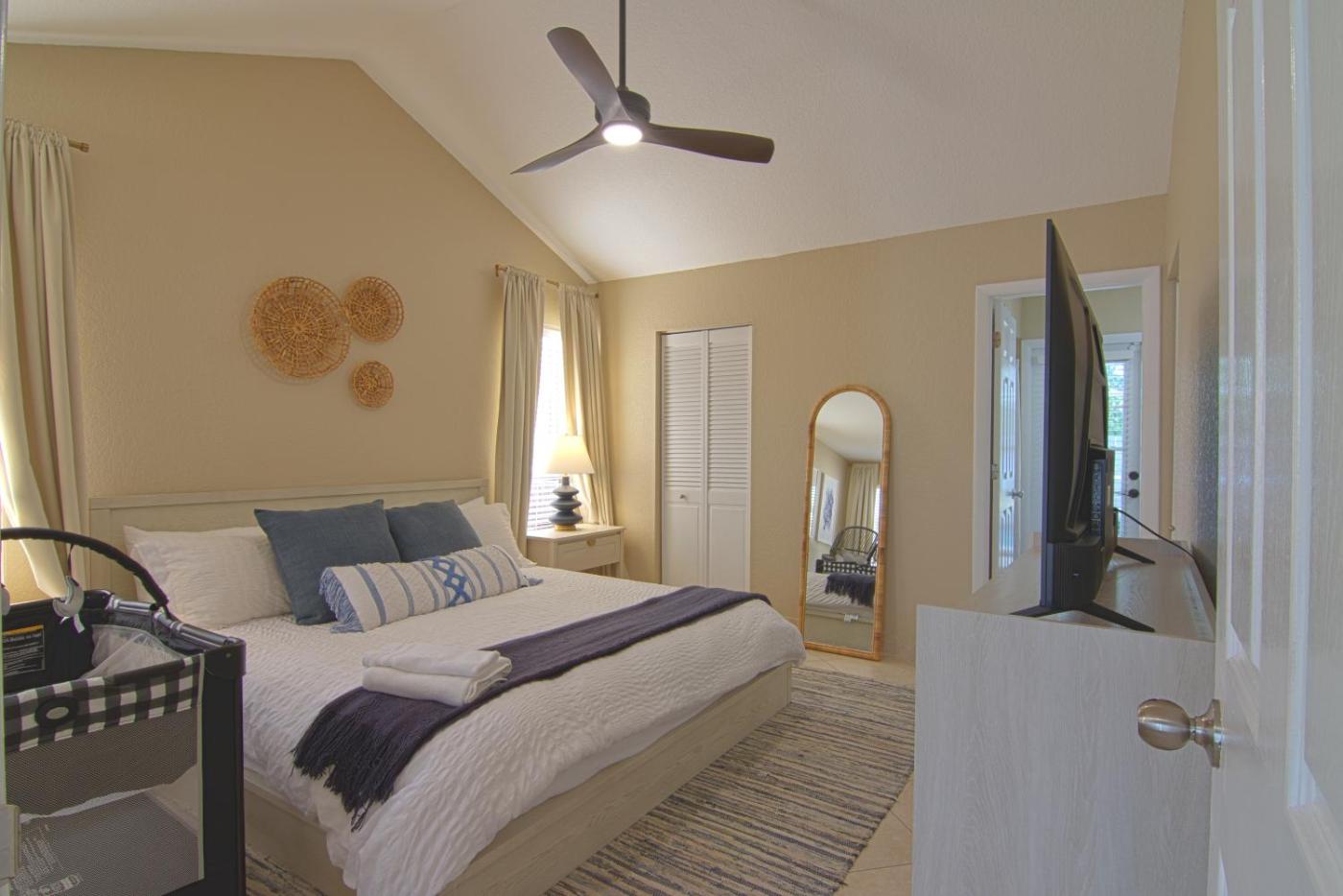 W domu wakacyjnym z 3 sypialniami zapewniono salon z telewizorem z płaskim ekranem, kuchnię z pełnym wyposażeniem oraz kilka łazienek (2).