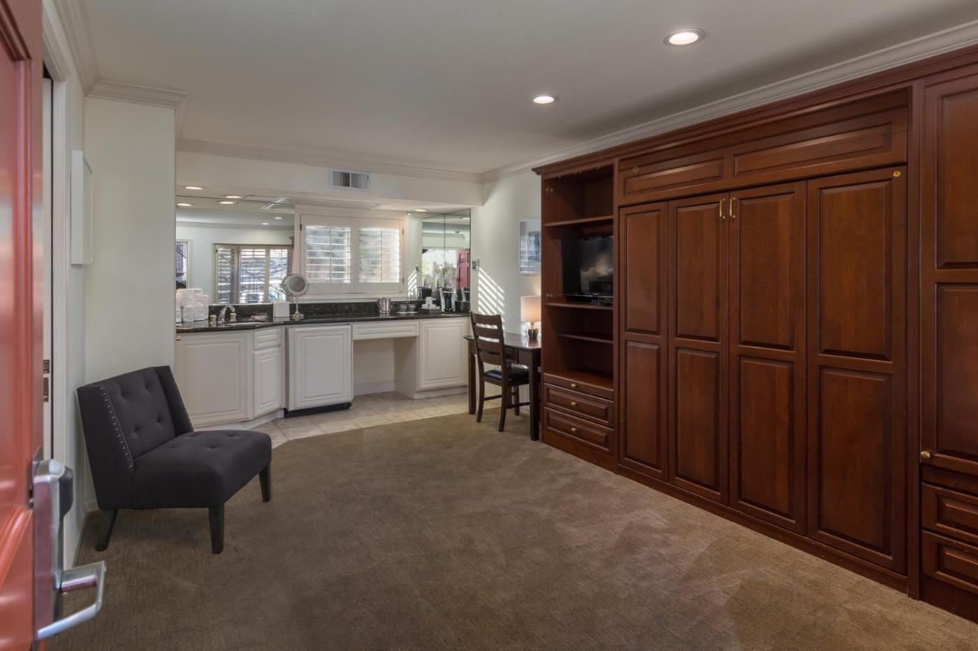 Pokój z łóżkiem typu king-size. These rooms feature WiFi, a flat-screen TV, a refrigerator, a microwave, a Keurig coffeemaker, a wet bar with granite counter top, and toiletries. Pokój Dwuosobowy - 2 osobowy. Powierzchnia pokoju ok.: 26 mkw. ;