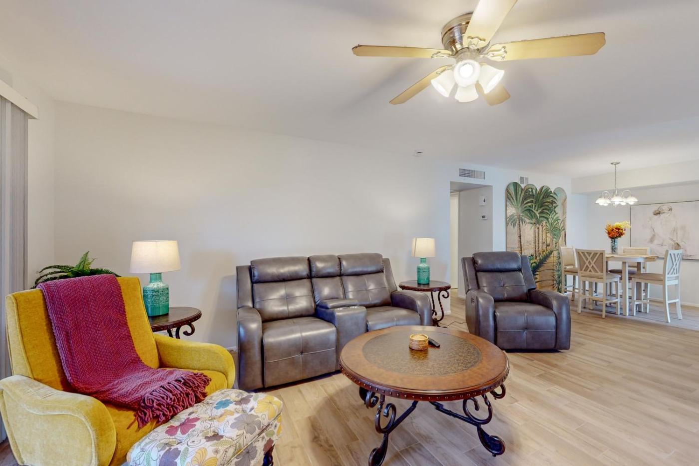 Obiekt Palm Villa położony jest w miejscowości Scottsdale i oferuje klimatyzację. Odległość ważnych miejsc od obiektu: Centrum kongresowe Phoenix Convention Center – 23 km, Plac Copper – 23 km. Oferta apartamentu obejmuje odkryty basen i restaurację.