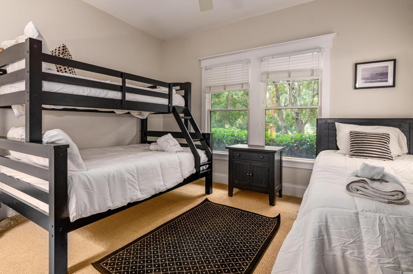 W domu wakacyjnym do dyspozycji gości przygotowano kilka sypialni (3), kuchnię ze standardowym wyposażeniem, takim jak lodówka i zmywarka, a także kilka łazienek (3) z wanną lub prysznicem. Wyposażenie obejmuje także telewizor z dostępem do kanałów kablowych. W domu wakacyjnym zapewniono ręczniki i pościel.