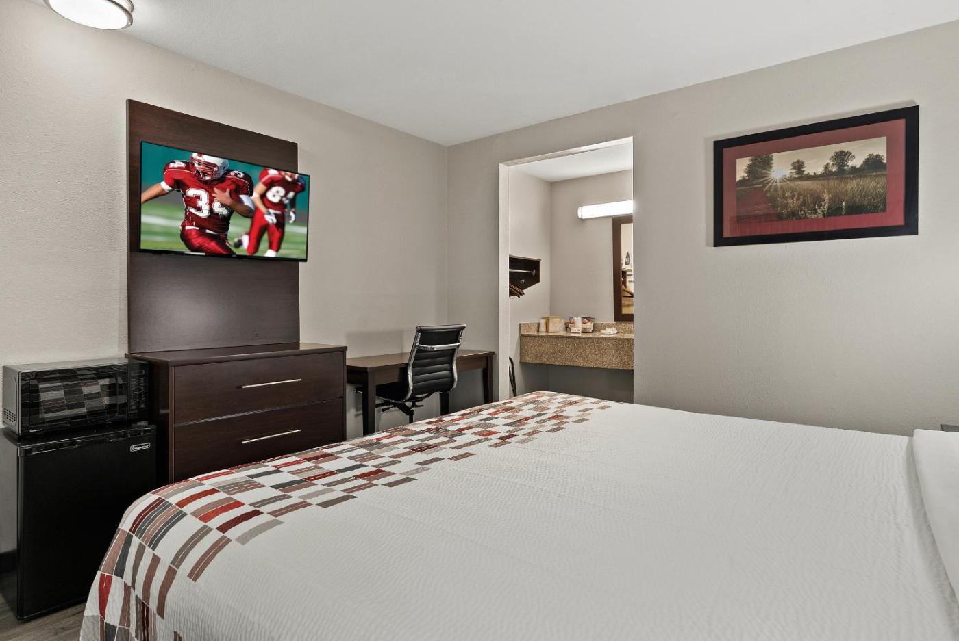Cable TV and a telephone are provided in the simply decorated rooms at the Red Roof Inn Spartanburg - I-85. Rooms are also equipped with air conditioning and an en suite bathroom.