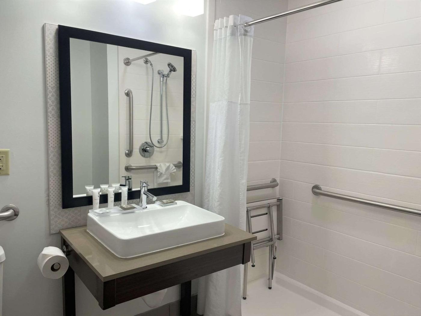King Studio Suite with Roll-in Shower - Non-Smoking. This accessible suite features a roll-in shower, cable TV, and microwave. A small refrigerator and coffee-making facilities are also included. Apartament typu Suite - 2 osobowy. Powierzchnia pokoju ok.: 18 mkw. ;