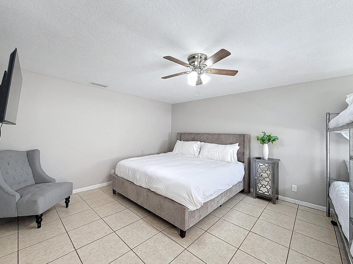 Oferta domu wakacyjnego obejmuje sypialnię (1), telewizor oraz klimatyzację. W domu wakacyjnym zapewniono ręczniki i pościel.