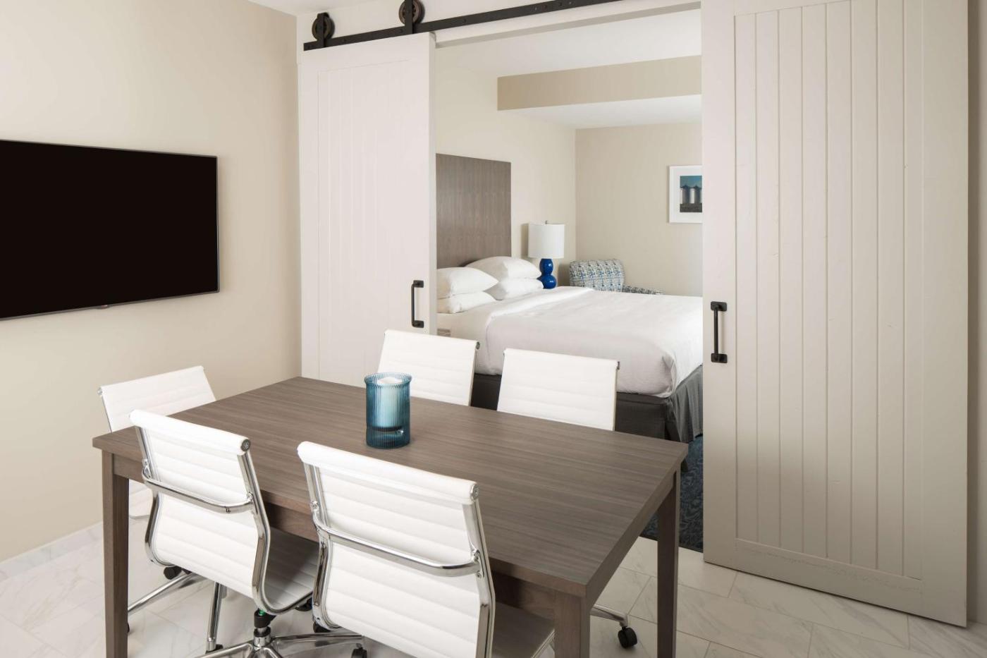 King Room with Patio - Hearing Access. Ten klimatyzowany i ogrzewany pokój dwuosobowy z częścią wypoczynkową oferuje telewizor z płaskim ekranem i dostępem do kanałów kablowych oraz zestaw do parzenia kawy i herbaty. W tej opcji zakwaterowania znajduje się 1 łóżko. Pokój Dwuosobowy - 2 osobowy. ;