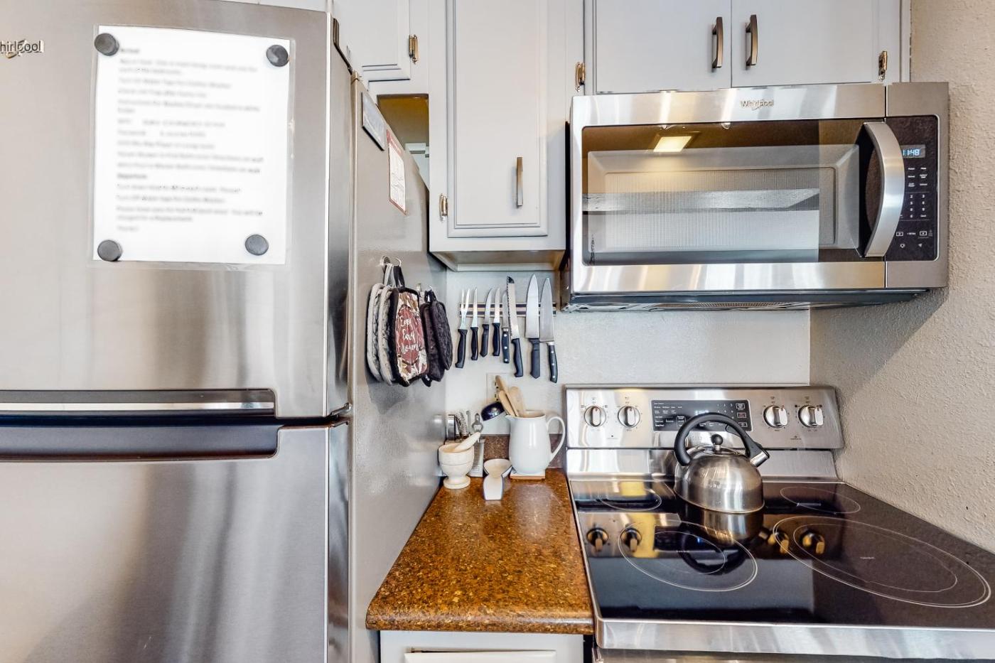 Ze wszystkich opcji zakwaterowania roztacza się widok na góry. W każdej z nich zapewniono pralkę, kuchnię z pełnym wyposażeniem, w tym lodówką, jak również prywatną łazienkę z bezpłatnym zestawem kosmetyków. Wyposażenie obejmuje również zmywarkę, piekarnik, mikrofalówkę i ekspres do kawy.