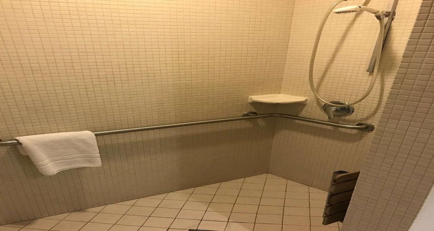 Queen Room with Roll-In Shower - Mobility Access. This double room features air conditioning and seating area. There is also a hairdryer, an iron with ironing facilities, and a refrigerator available. ;