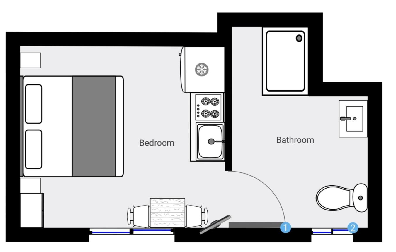Apartament typu Standard Suite. The air-conditioned suite has 1 bedroom and 1 bathroom with a shower and a hairdryer. Guests will find a refrigerator, kitchenware, a microwave and a toaster in the well-equipped kitchenette. The suite also includes a barbecue. The suite features a coffee machine, parquet floors, heating, as well as a TV with cable channels. The unit has 2 beds. Apartament typu Suite - 4 osobowy. Powierzchnia pokoju ok.: 6 mkw.