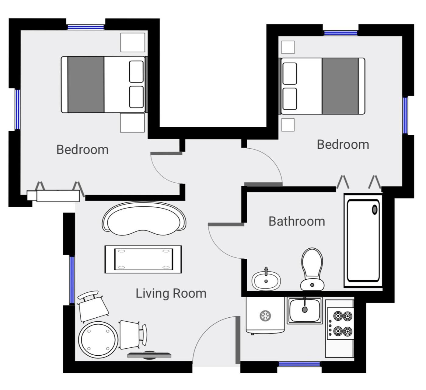 Apartament typu Deluxe. This apartment comprises 1 living room, 2 separate bedrooms and 1 bathroom with a shower and free toiletries. Meals can be prepared in the well-fitted kitchen, which comes with a refrigerator, kitchenware, an oven and a microwave. The air-conditioned apartment provides a flat-screen TV with cable channels, a tea and coffee maker, a seating area, a barbecue as well as mountain views. The unit offers 3 beds. Apartament - 4 osobowy. Powierzchnia pokoju ok.: 14 mkw. ;