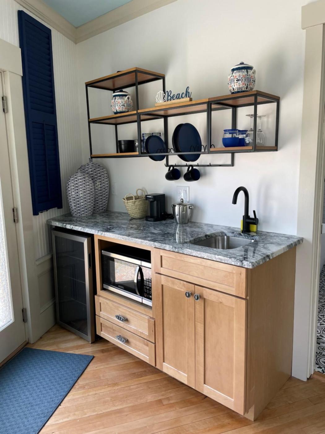 Studio with Private Entrance. Located behind the main home, this studio has a private entrance and full kitchen. ;