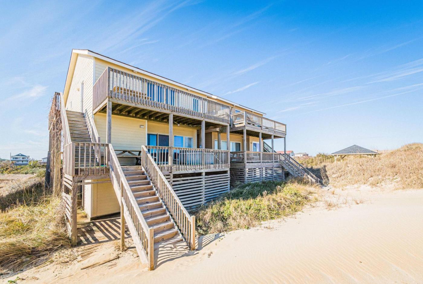 Boasting sea views, The Flying Tiger Inn - S Nags Head MP 17, Oceanfront Duplex, Ocean View, Elevator, Hot Tub is situated in Whalebone, around 1.8 km from Nags Head Beach. The holiday home features parking on-site, a hot tub and a 24-hour front desk.