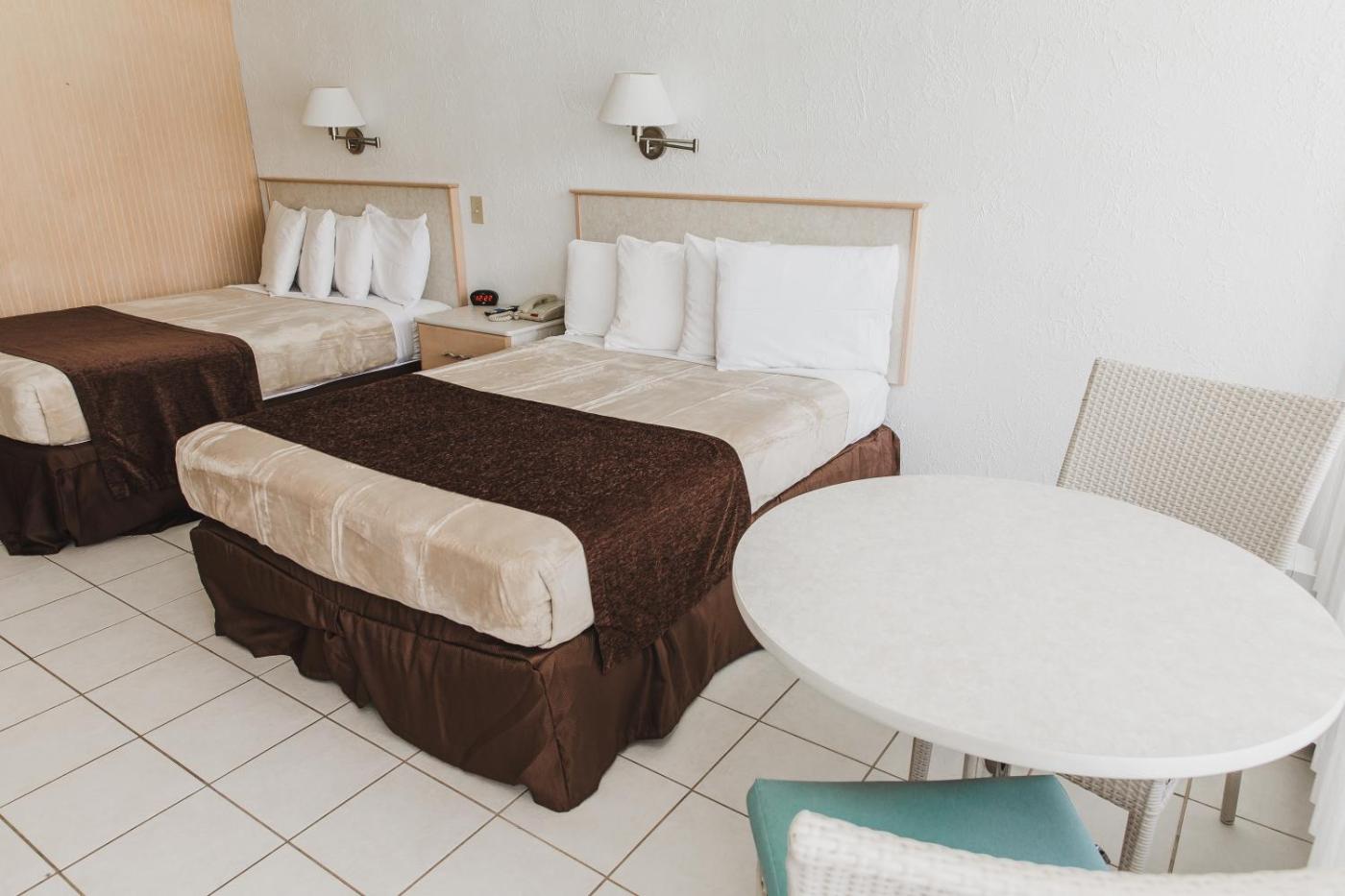 Each air conditioned room here will provide you with a refrigerator, microwave and DVD player. In-room safes are also offered. Guest rooms can be found in either Building 1, which is connected to the boardwalk and features a rooftop pool or Building 2, which is a red building with a ground floor pool.